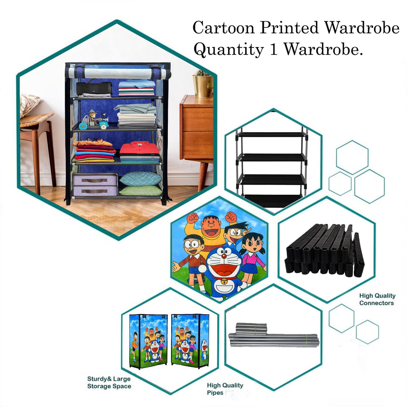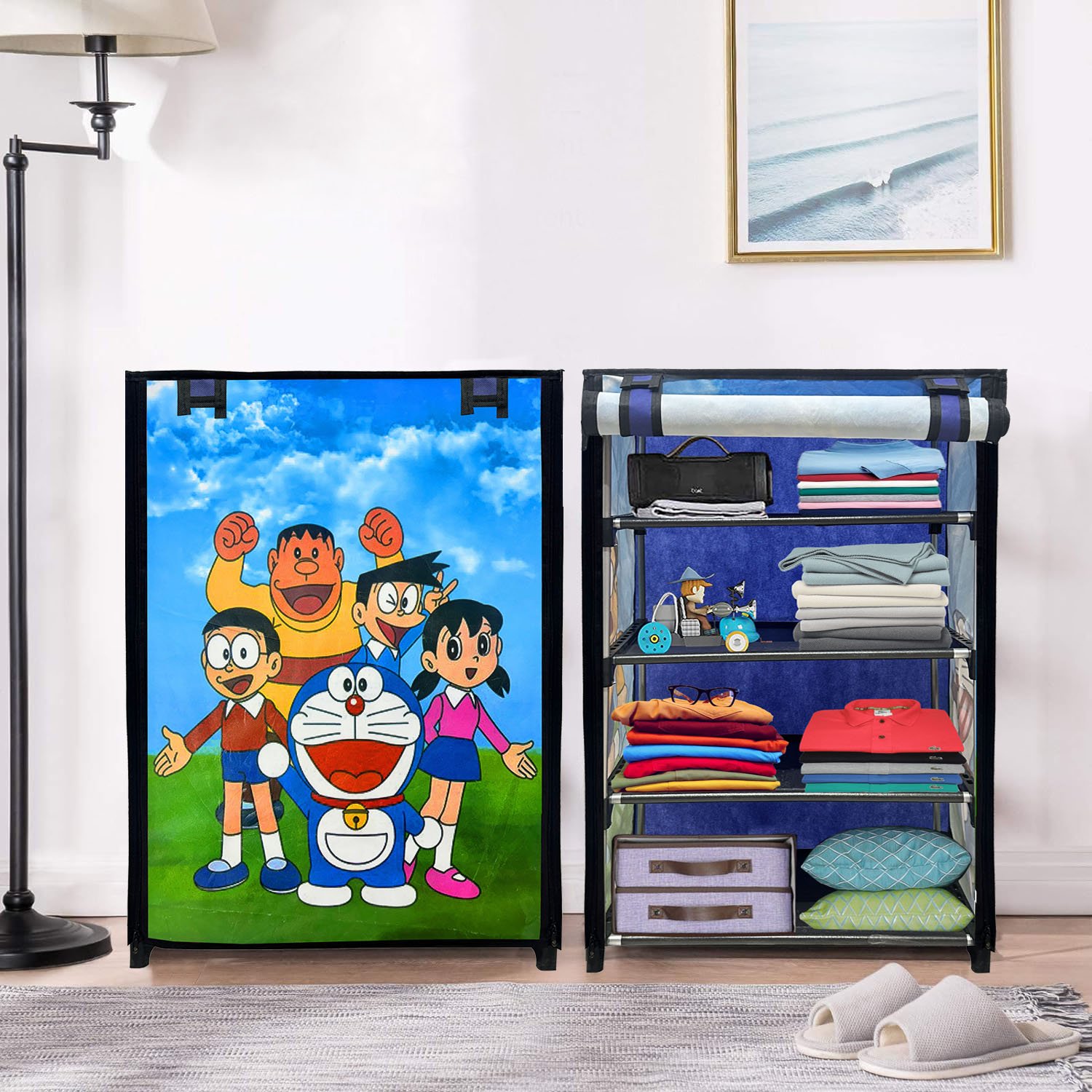 Engrave Fabric 4 and 5 – Shelves Cartoon Doraemon Specially For Kids Closet Rack In Multi Colour – by Urban Choice