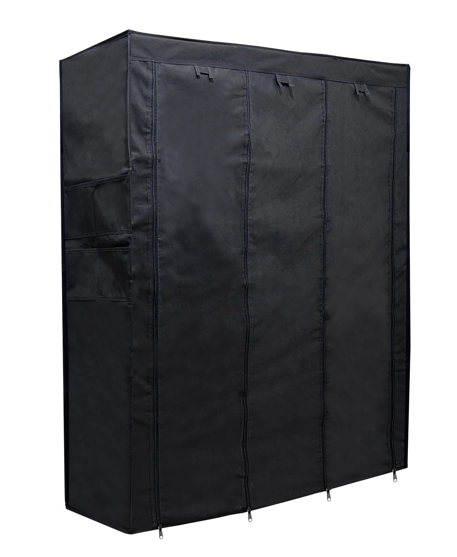 Neeva 100 GSM Fabric Outer Cover For Big Collapsible Wardrobe-Almirah 6+2 Model Cover In Black Colour – – by Urban Choice