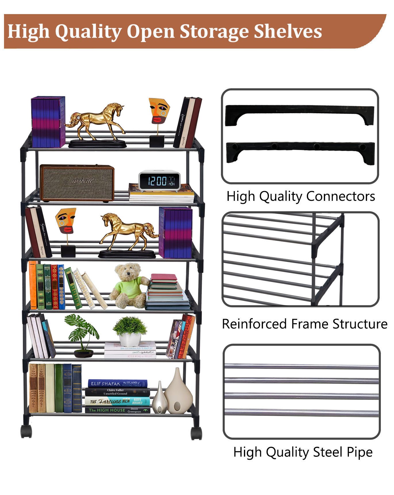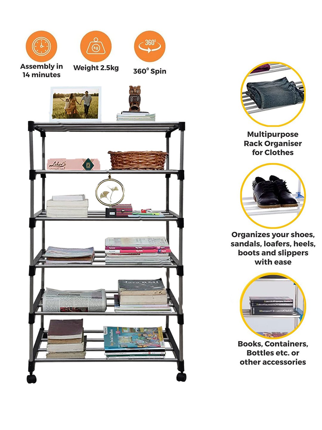 Opal 5 and 6 – Shelves with Wheels Books Rack In Black Colour – by Urban Choice