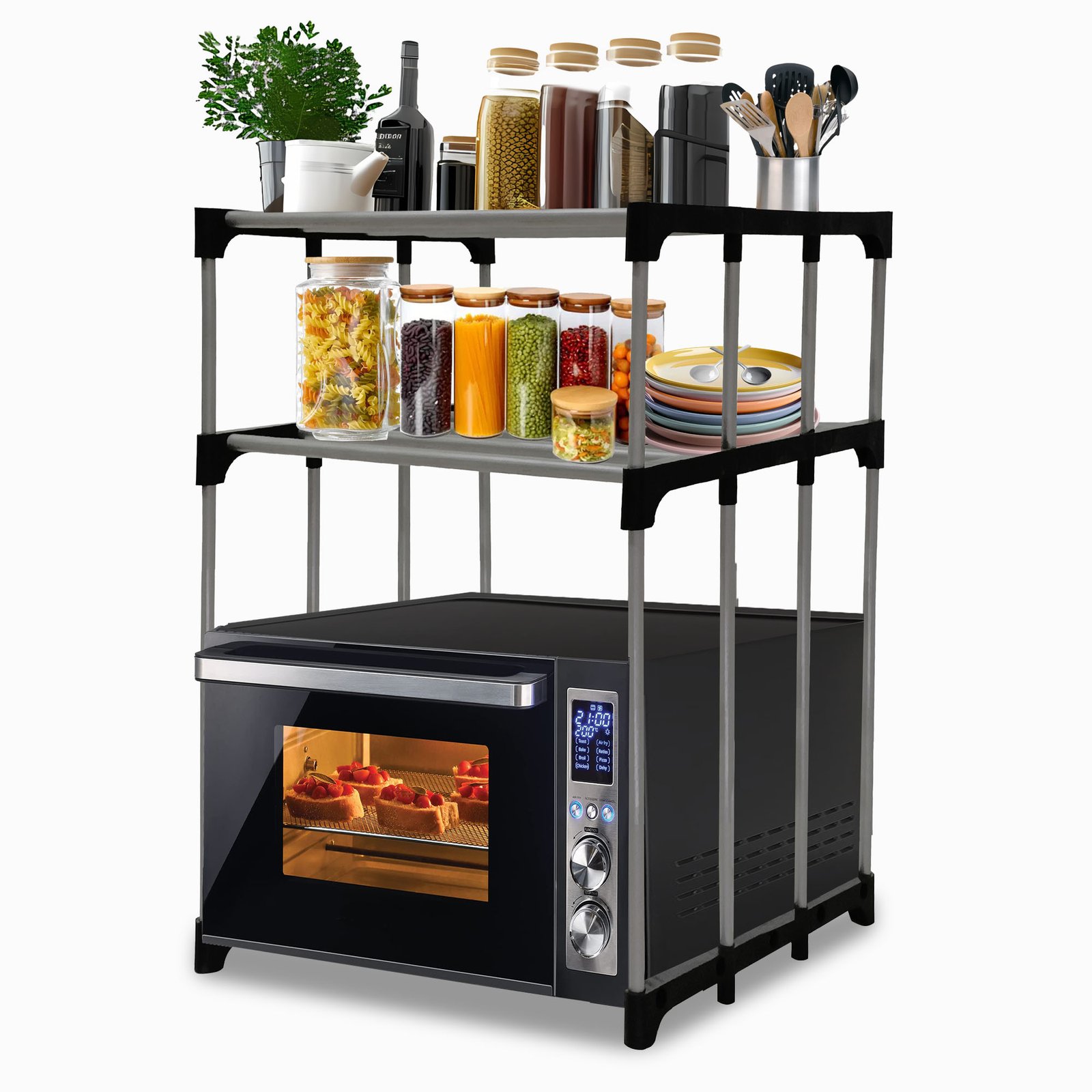 Satty 2 and 3 – Shelves Open Microwave Stand In Black Colour – by Urban Choice