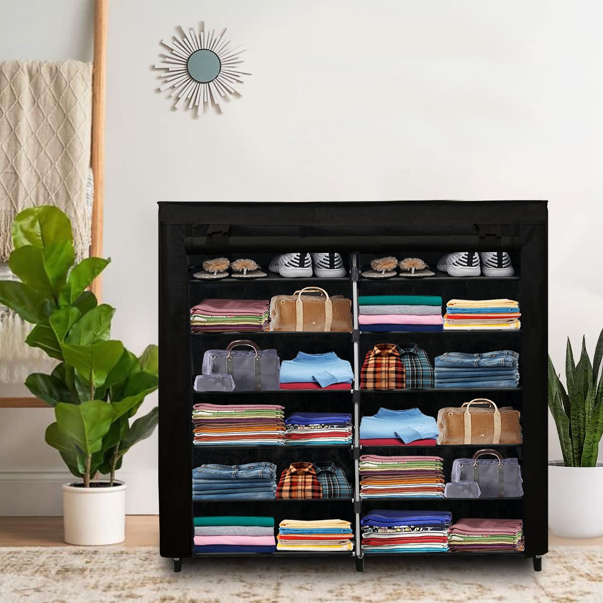 Serene Fabric 12-Shelves Collapsible Closet Rack In Multi Colour – by Urban Choice