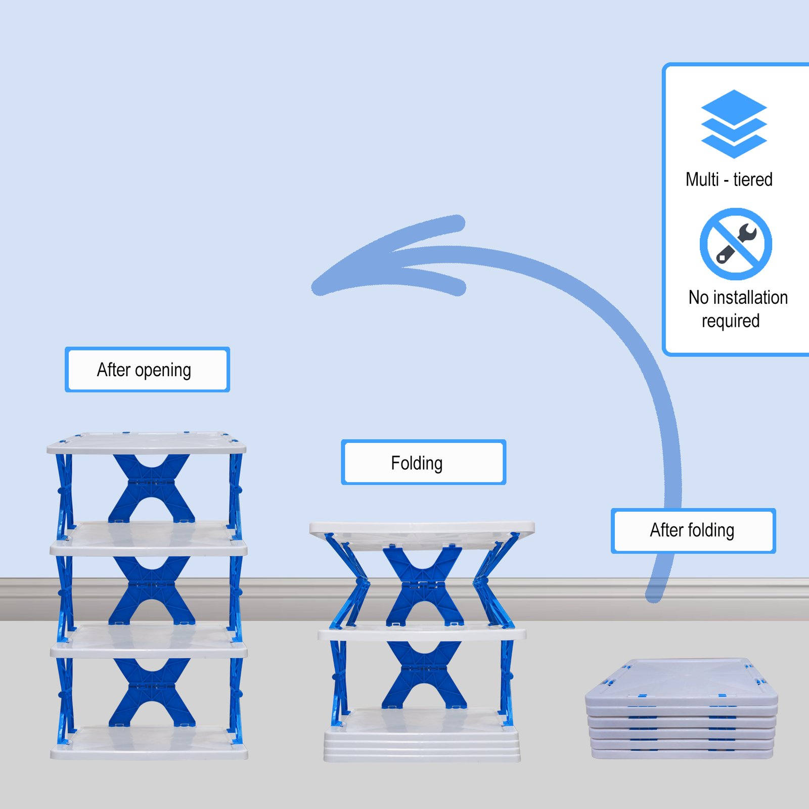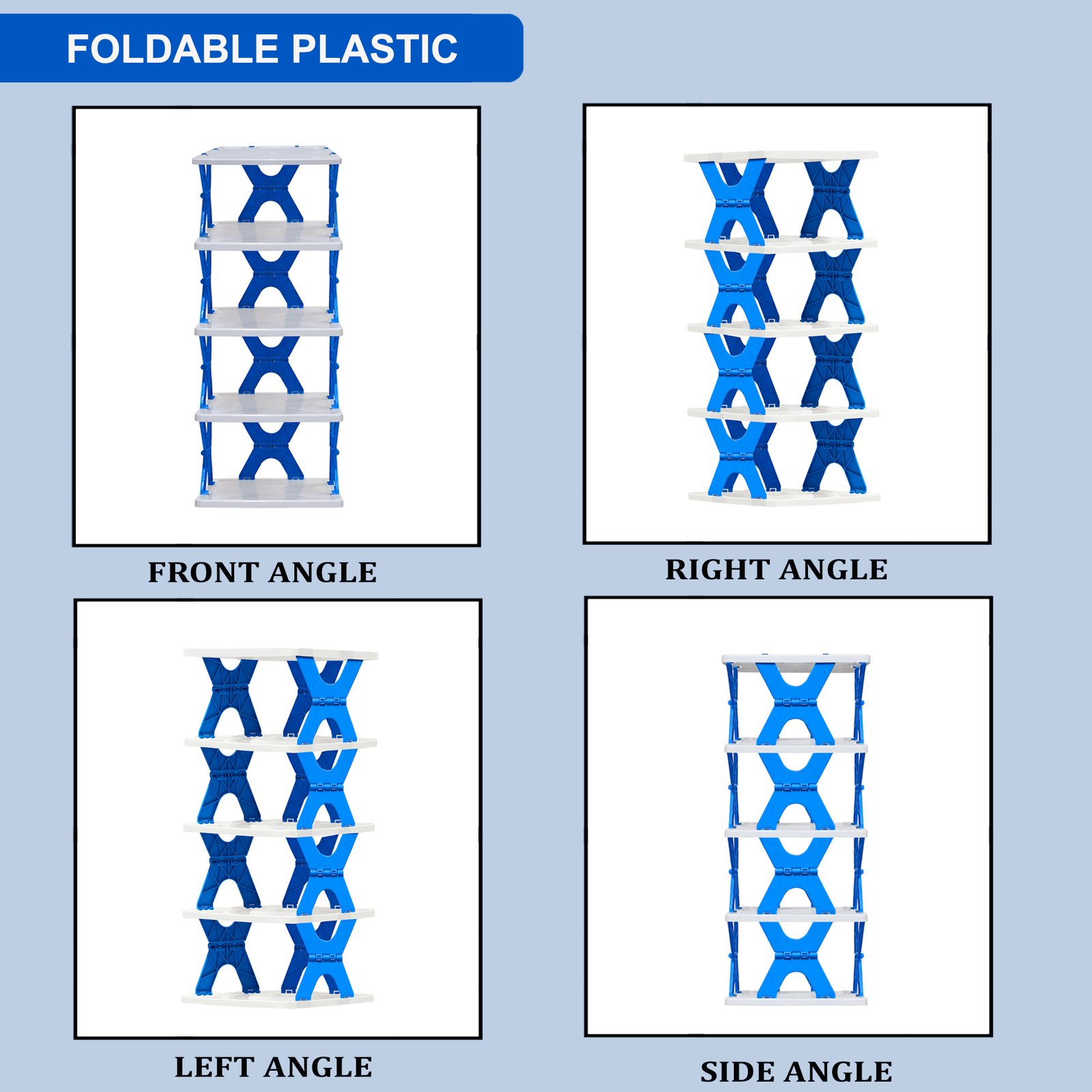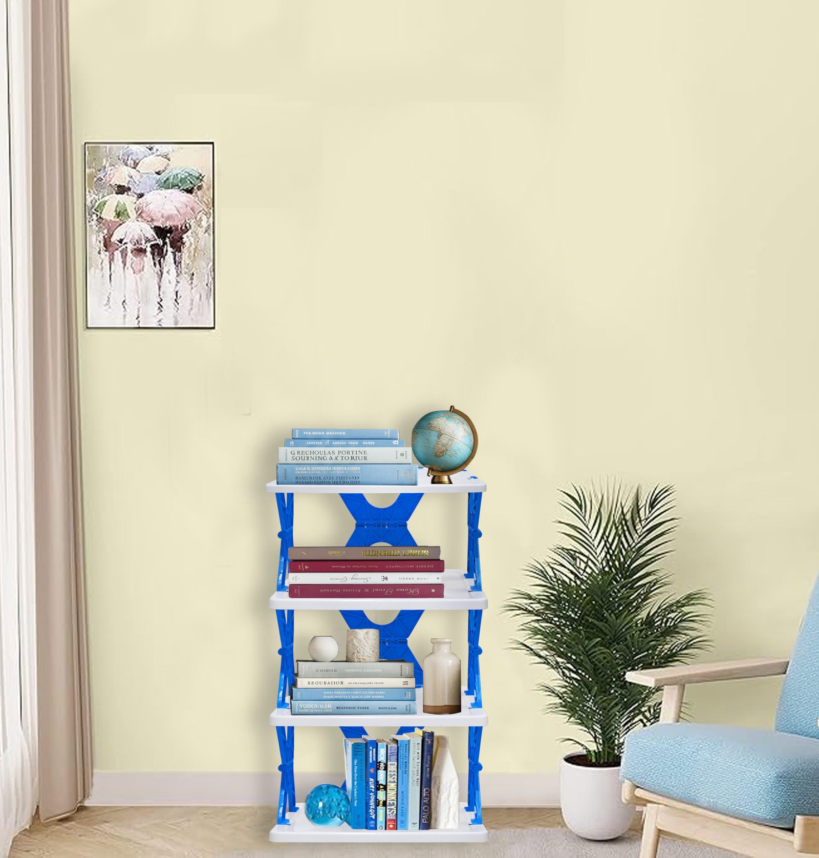 Stear Plastic 4/5/6 -Shelves Home Use Foldable, Easy to Carry and Compact Design Book Rack In Blue Colour – by Urban Choice