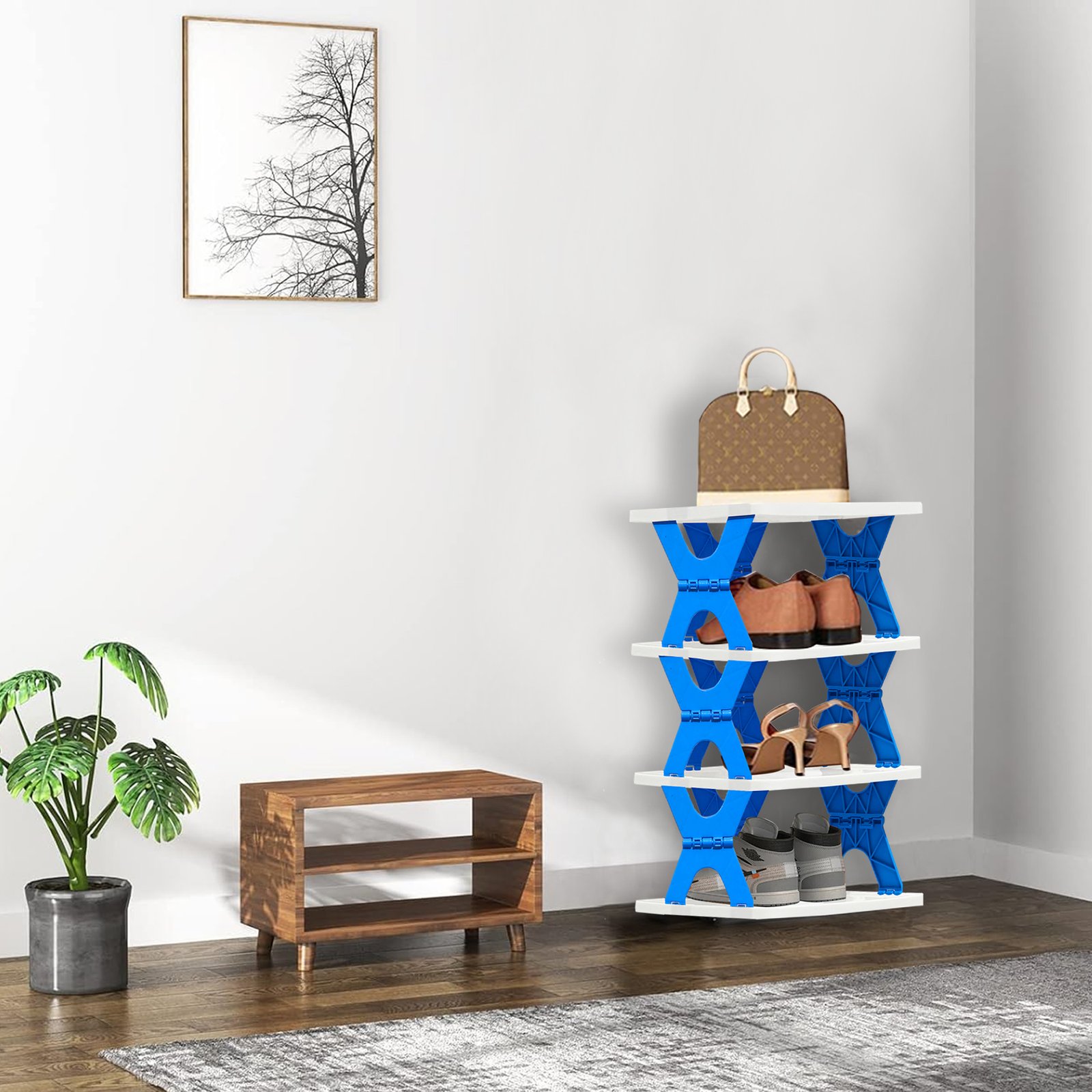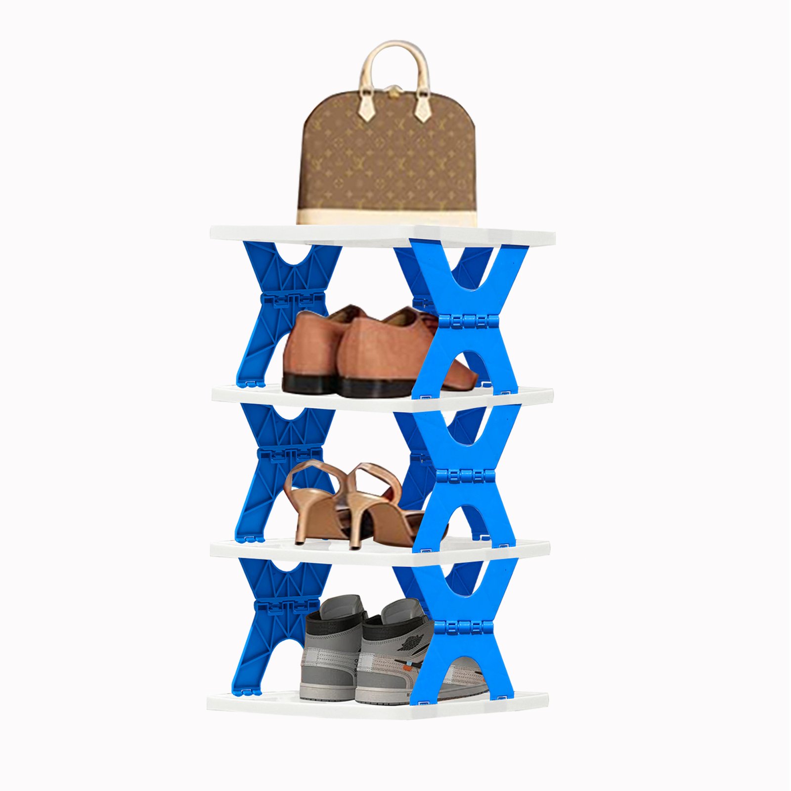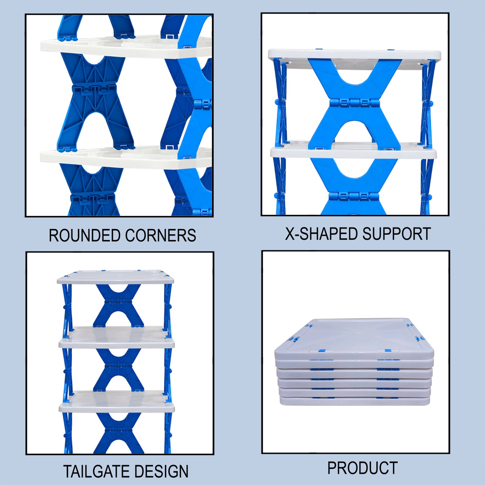 Stear Plastic 4/5/6 -Shelves Home Use Foldable, Easy to Carry and Compact Design Shoe Rack In Blue Colour – by Urban Choice